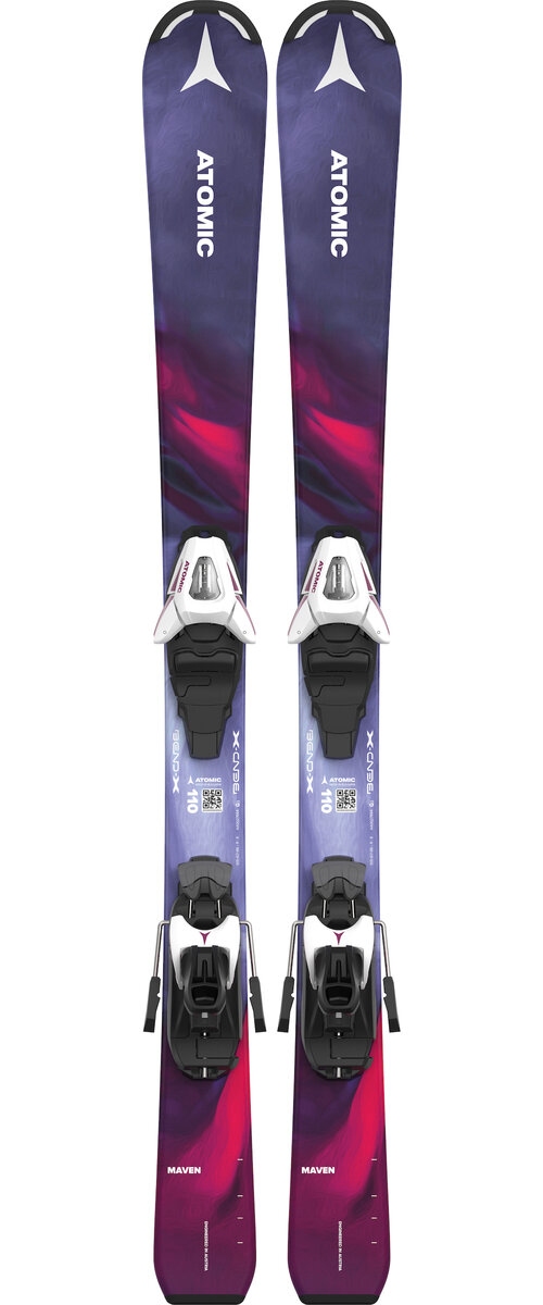 On or off piste, the Atomic Maven Girl 100-120 is designed for girls aged 5-8 and makes progressing super fun. Bend-X Technology and All Mountain Rocker lets young all-rounders make controlled turns effortlessly: the special flex zone in the binding area allows young skiers to bend the ski easily for full contact with the snow at all times, regardless of their weight. The Maven Girl 100-120 models are a little wider than the Maven Girl 70-90 and with more sidecut. The geometry is precisely tailored to the respective length of the ski, so every young skier can shred the mountain with the ski that is exactly the right fit.